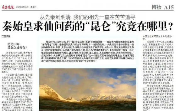 前段时间,《光明日报》的一篇《实证古代“昆仑”的地理位置——青海黄河源发现秦始